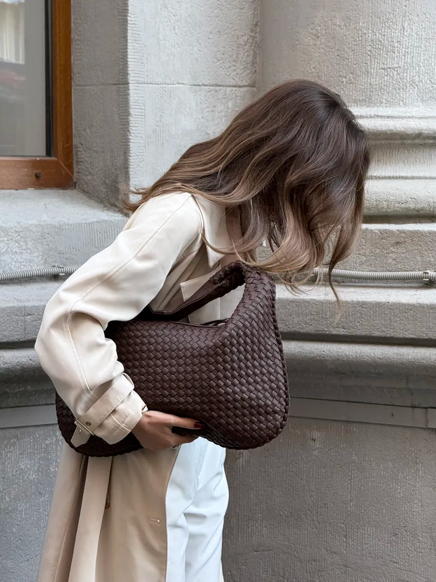 A Bolsa Maxi Trançada Havana é o acessório perfeito para armazenar os itens que você precisa e dar um toque extra de estilo nas suas composições.
