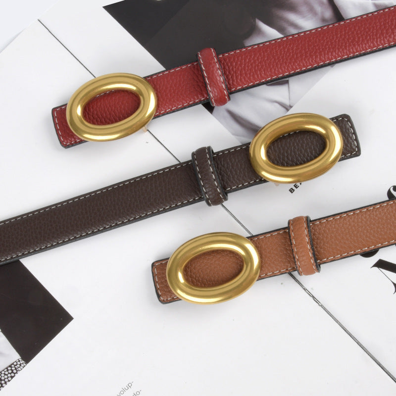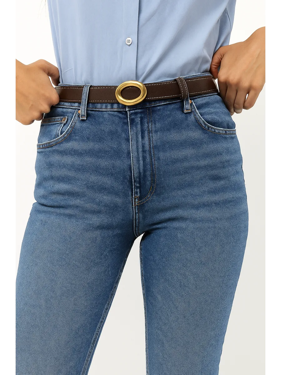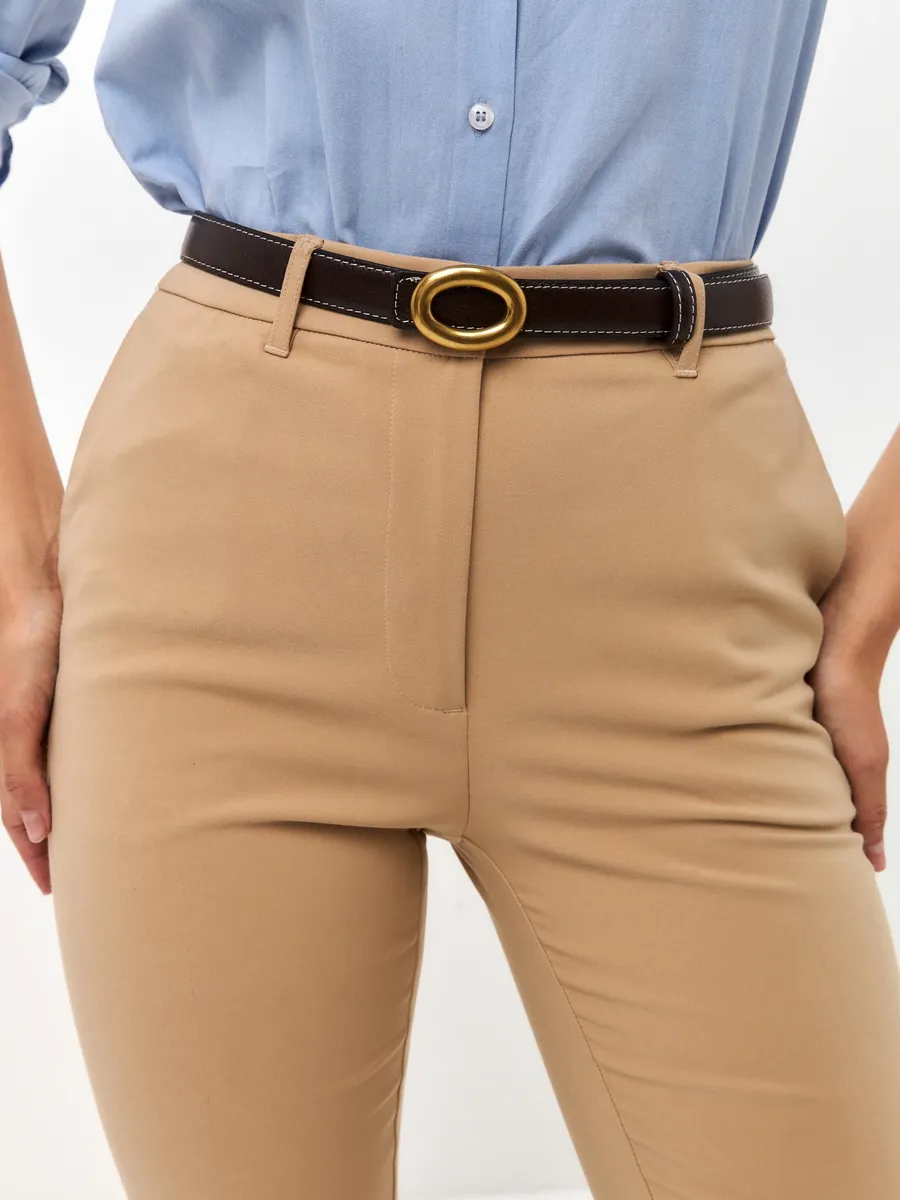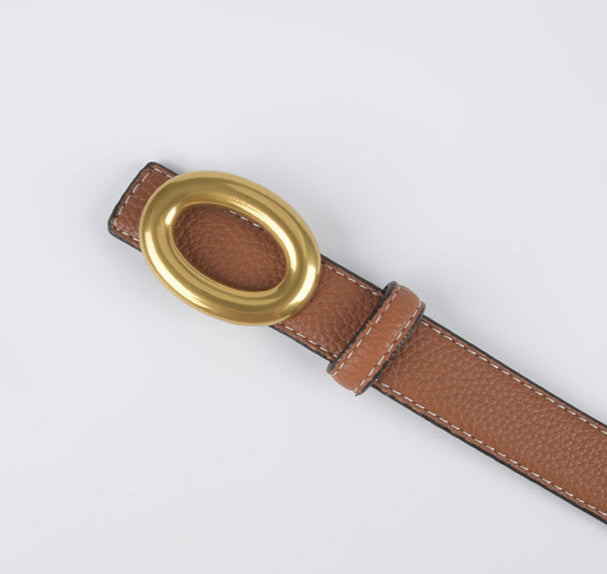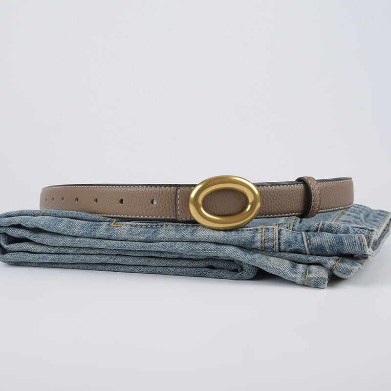O Cinto Baroni traduz o equilíbrio perfeito entre sofisticação e estilo contemporâneo. Confeccionado em couro legítimo texturizado, ele se destaca pela fivela escultural em banho dourado, um design oval que vai além do óbvio e transforma o acessório em um verdadeiro statement de moda.